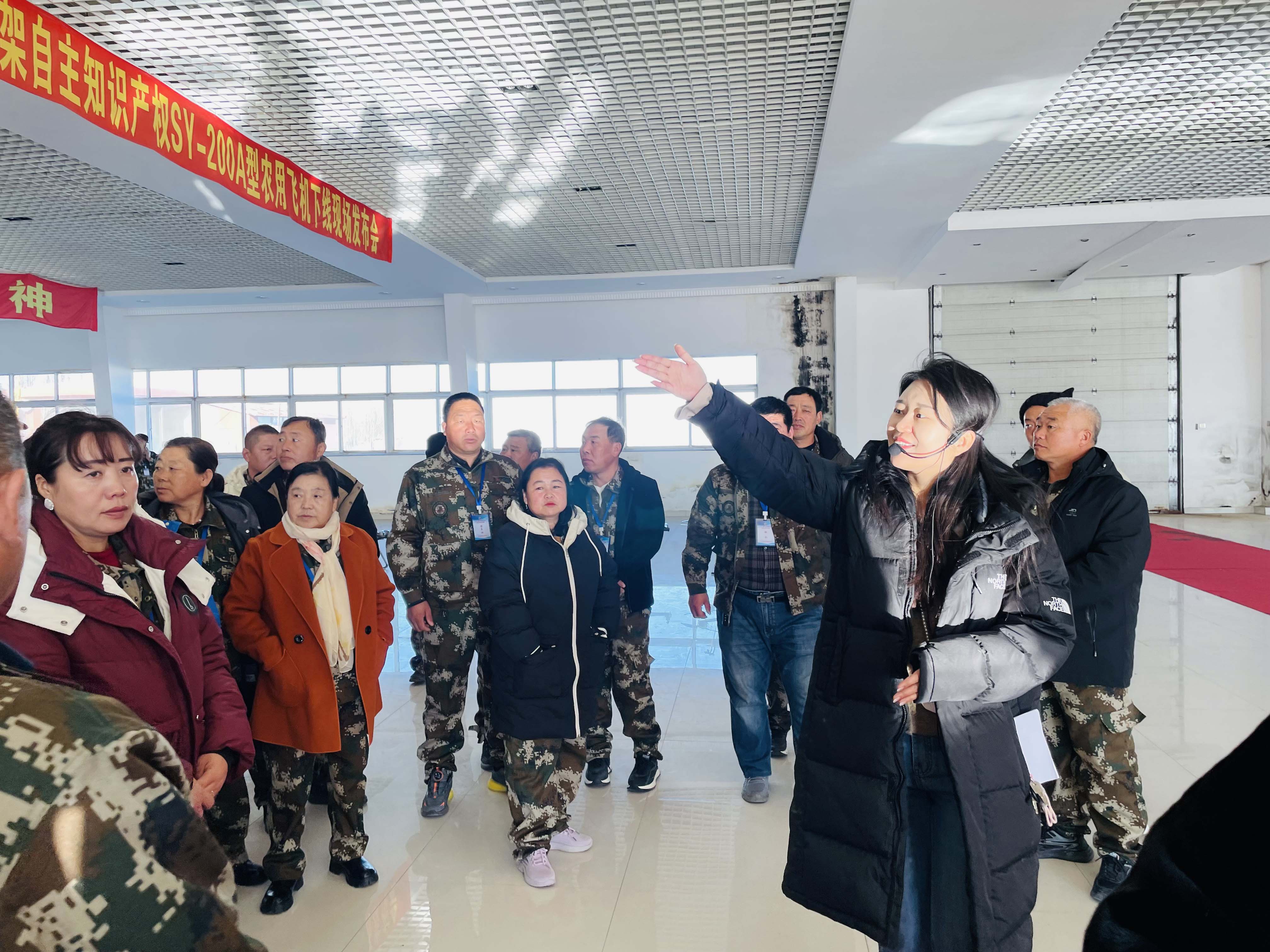 活動(dòng)當(dāng)天,來自科左中旗各鄉(xiāng)鎮(zhèn)的50余名農(nóng)牧民學(xué)員齊聚內(nèi)蒙古神鷹飛機(jī)制造有限公司,開啟了他們的“科技之旅”。在公司機(jī)務(wù)工程部王路的帶領(lǐng)下,學(xué)員們首先參觀了飛機(jī)展廳,詳細(xì)了解了AC311飛機(jī)以及公司自主研發(fā)的“SY-200”農(nóng)用飛機(jī)、神鷹植保無人機(jī)的相關(guān)工作原理及用途。王路結(jié)合實(shí)際案例,生動(dòng)講解了飛機(jī)在農(nóng)作物播種、施肥、病蟲害防治等方面的應(yīng)用優(yōu)勢,讓學(xué)員們深刻認(rèn)識到現(xiàn)代農(nóng)業(yè)科技帶來的巨大變革。