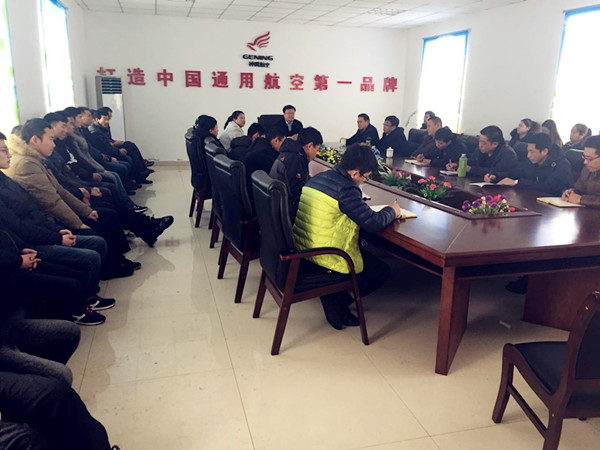 通遼市神鷹通用航空有限公司全體人員在飛機(jī)制造廠(chǎng)小會(huì)議室召開(kāi)新年動(dòng)員大會(huì)