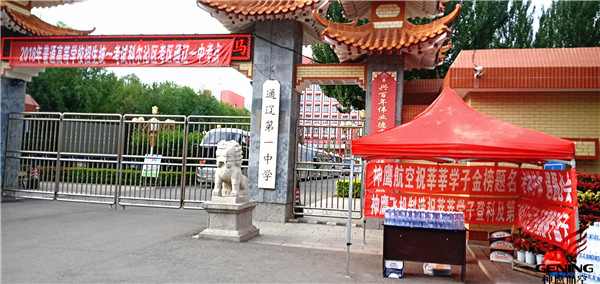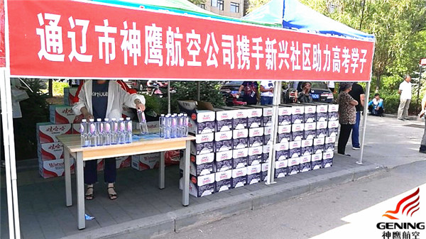 為了給莘莘學子們加油打氣,用實際行動表達對考生和家長們的關(guān)切之情,6月7日一大早,通遼市神鷹通用航空有限公司攜手新興社區(qū)開展的以“護航高考獻愛心”為主題的愛心送水活動正式開始了,活動地點設(shè)在了通遼一中和奈曼一中考點外,同時愛心送水點搭建了臨時帳篷,以方便家長們休息等待。